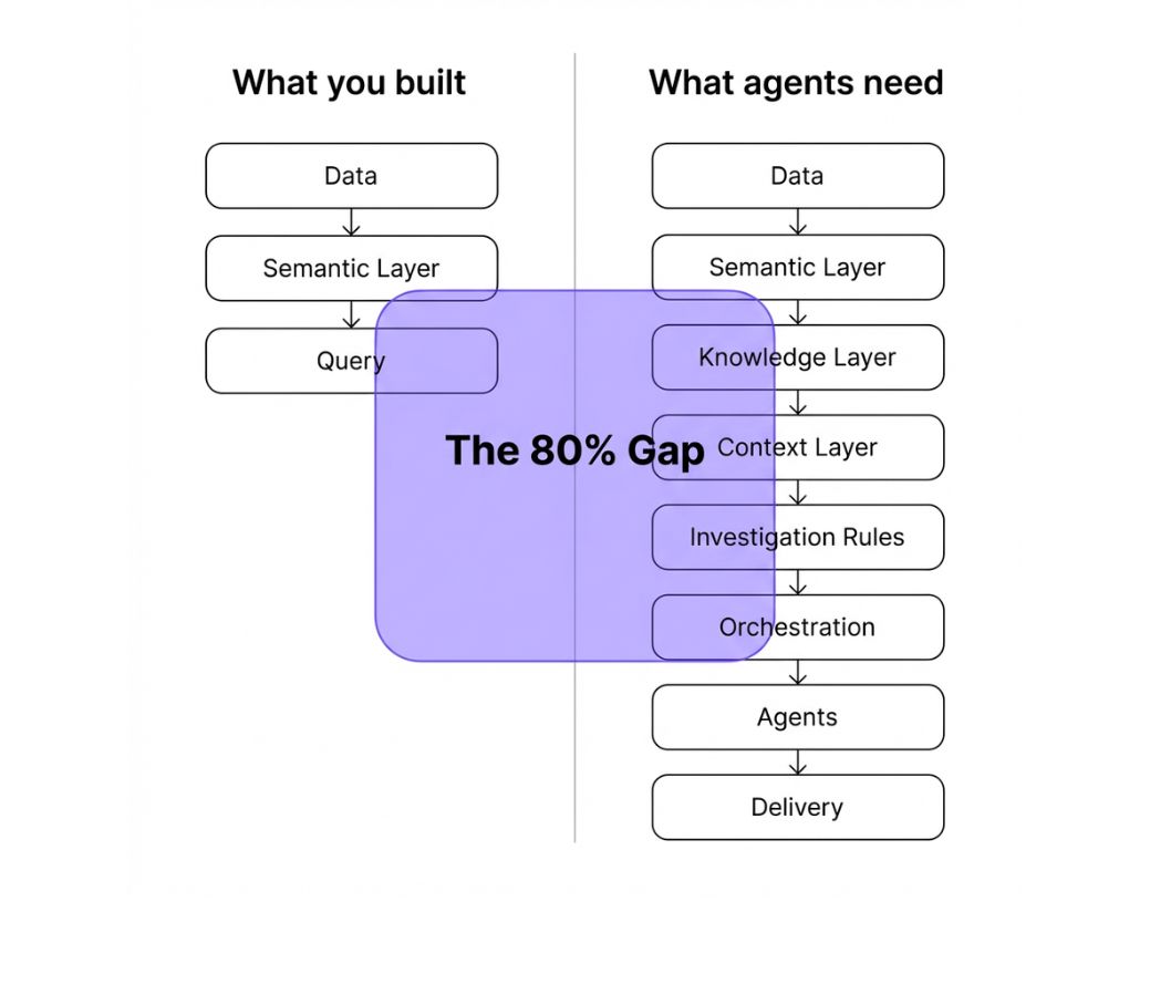 Your missing intelligence layer—unifying data, metrics, & knowledge—into a conversational insights engine that empowers true self-service analytics bridging the gap between questions and actionable insights.