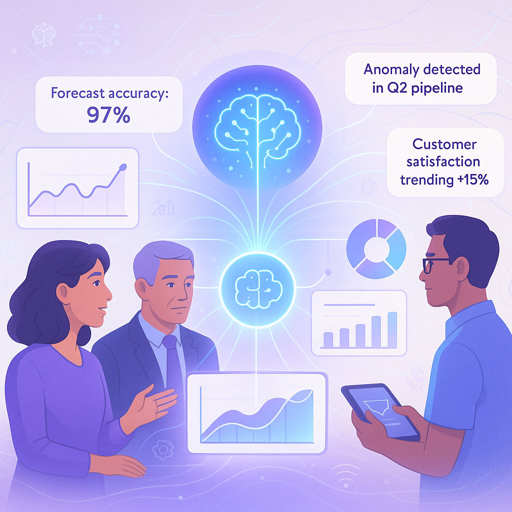 AI-powered analytics enhances traditional data analysis by using artificial intelligence and machine learning to surface patterns, predict outcomes, explain drivers, and automate workflows. It includes natural language queries, anomaly detection, forecasting, and insight generation without manual configuration.
